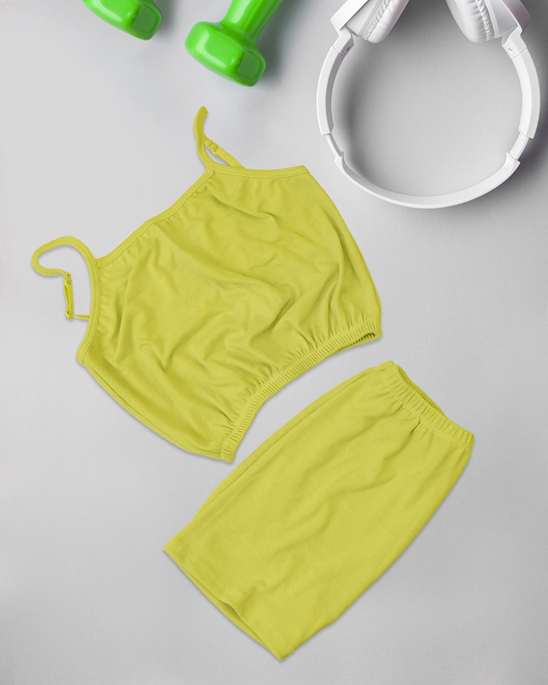 ست تاپ شلوارک کبریتی سبز فسفری 1406